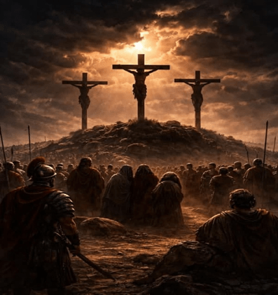 Estas tres cruces que simbolicamente estan alli en el golgota , el cristo en el medio ya que el es nustra Verdad intima, la esencia a su derecha como el buen ladron y el mal ladron a su izquierda , todo esto simbolizando como el “ yo” se disuelve en la cruz de los elementos.